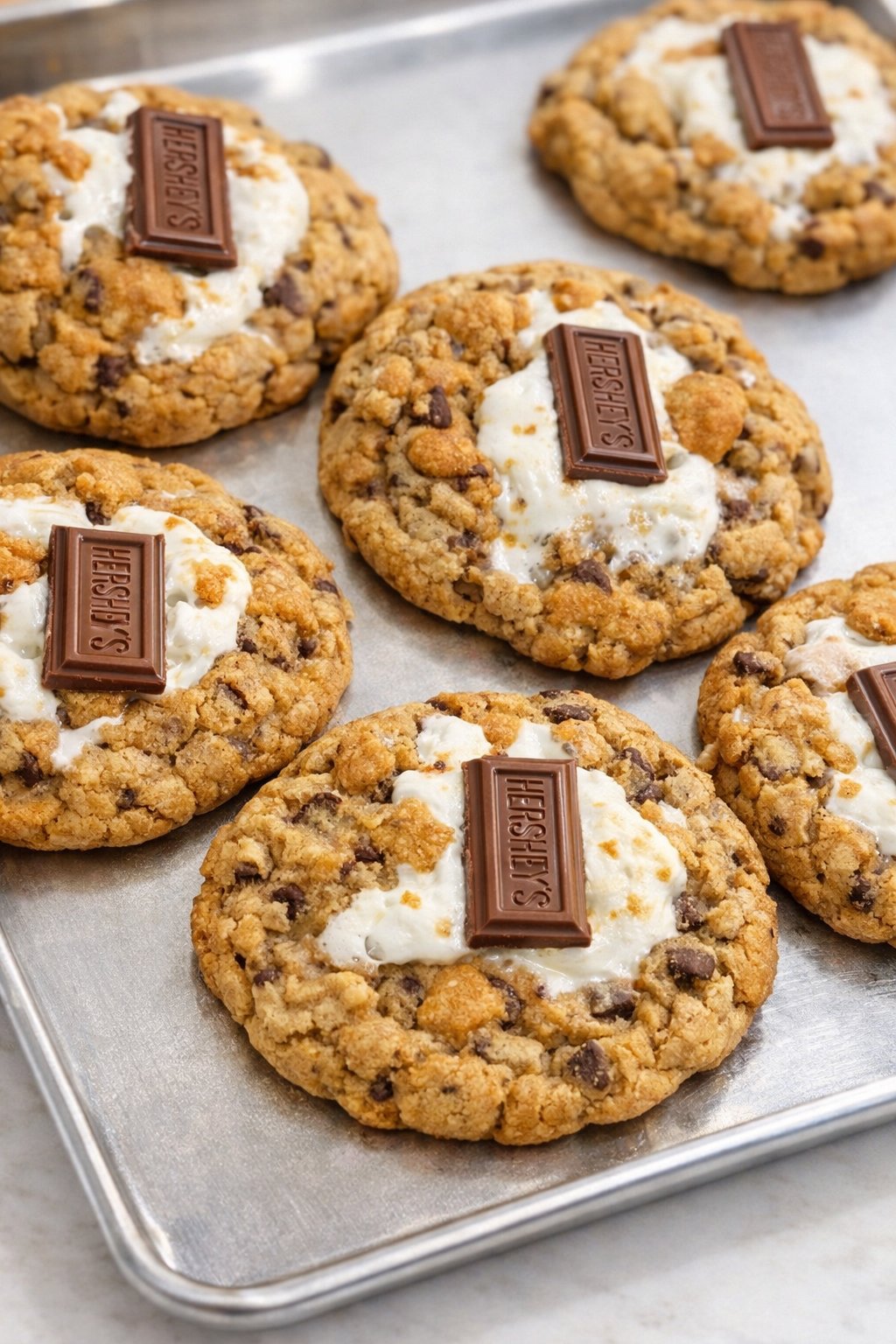 Soft, gooey chocolate chip cookie loaded with a graham cracker, marshmallows, and pieces of real Hershey's chocolate. A campfire classic turned into the perfect cookie.